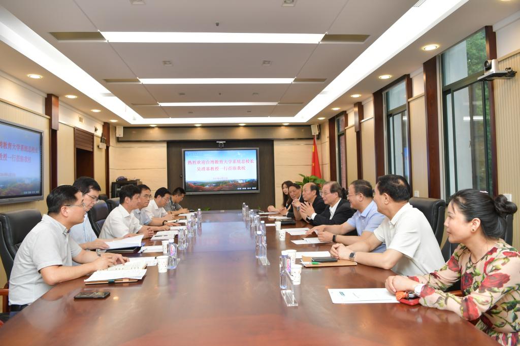 华大在线讯(记者 党波涛)6月21日,台湾前教育部门负责人、中国国民党评议会主席、教育大学系统总校长吴清基一行来校交流。湖北省台办主任李建红,校长、党委副书记赵凌云,武昌首义学院理事长金国华,两岸现代职业教育协会秘书长邓翼生等出席。学校办、校友工作与合作办、港澳台办等有关单位负责人参加。座谈会由副校长蔡红生主持。