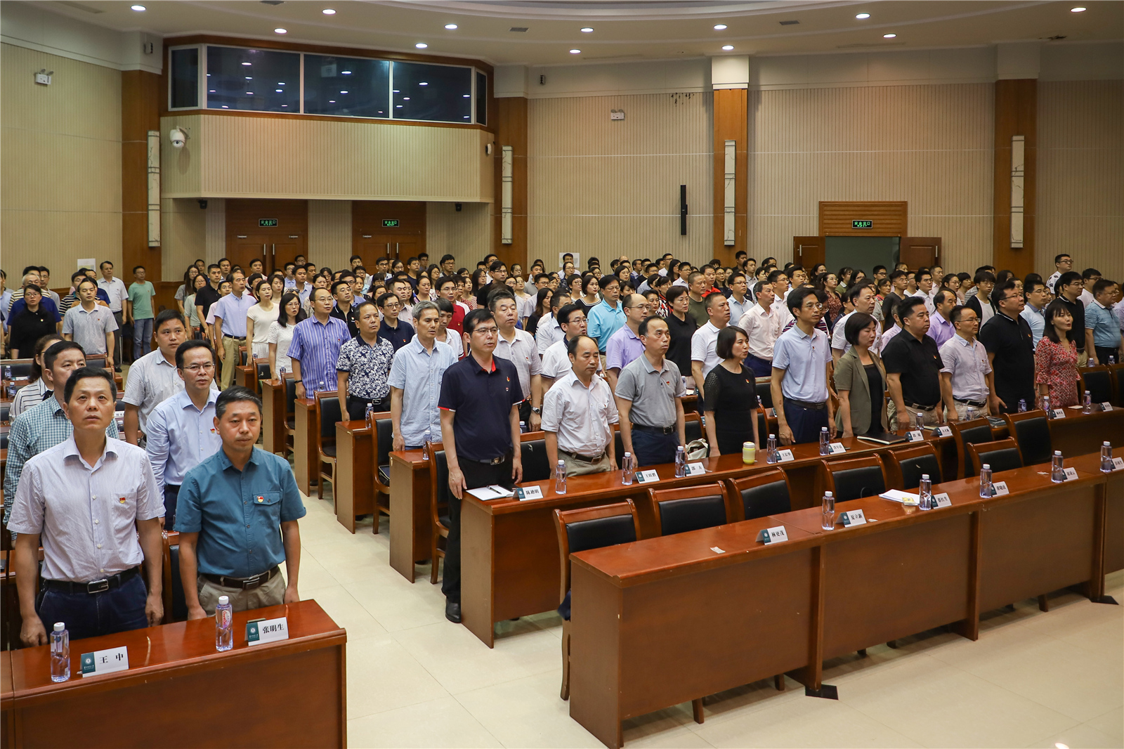华大在线讯(记者 郝日虹)6月28日,我校庆祝建党98周年暨“七一”表彰大会在科学会堂一楼报告厅举行。全体校领导,校长助理以及学校职能部门主要负责同志,二级单位分党委(党总支)书记、副书记出席。大会对2017~2019年度70个先进基层党组织、40名优秀党务工作者、220名优秀共产党员进行了表彰;为我校首批党建工作标杆分党委、样板党支部建设单位授牌。校长、党委副书记赵凌云主持表彰大会。