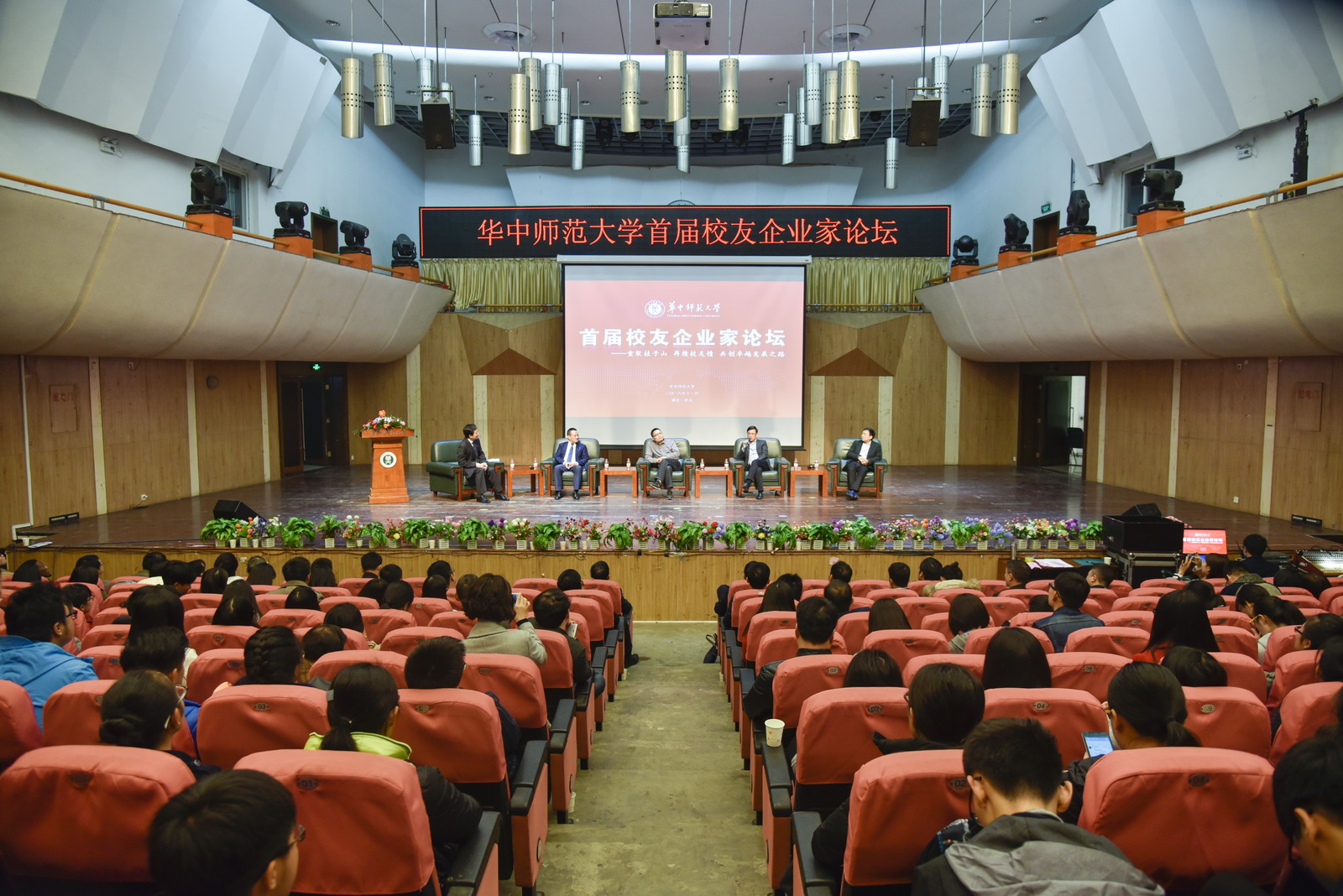 下午,主题为“创新与转型”的华中师范大学首届校友企业家论坛在音乐厅举行,校长杨宗凯、副校长黄永林出席。政治系87届校友、广东广和律师事务所创始合伙人童新,政治系84级校友、上海道亨资产管理有限公司董事长顾清明,中文系92级校友、北京汉博商业管理股份有限公司董事长朱友军,中文系92级校友、康亦健集团董事长潘峰与在座校友、师生分享成功经历,抒发创业心声,共话母校情怀。论坛由中文系80级校友、资深香港传媒人郭一鸣主持。