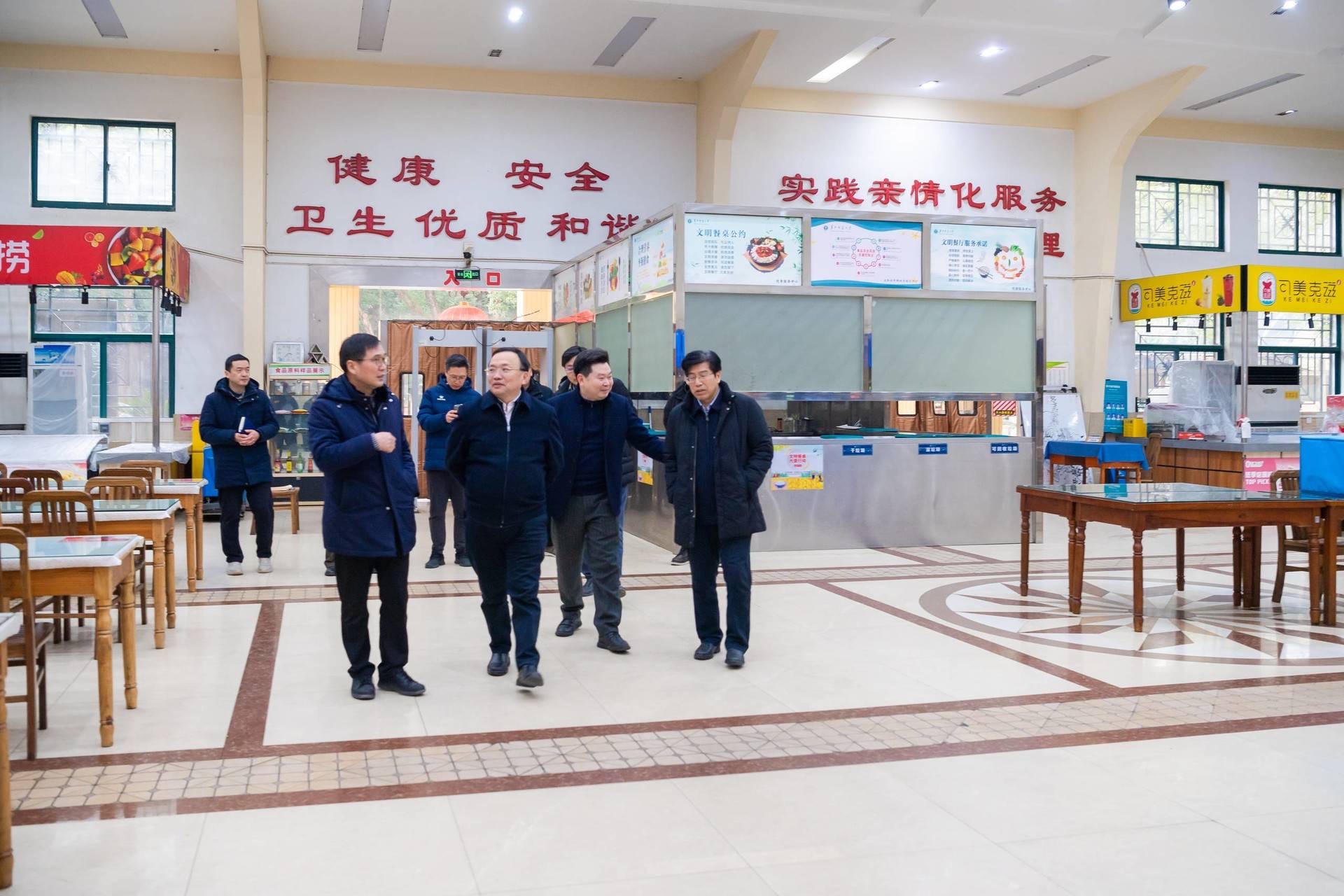 华大在线讯(记者 郝日虹)筑牢安全线,平安迎假期。为进一步落实校园安全管理,确保广大师生度过一个安全祥和的假期和春节,1月26日,校党委书记夏立新、校长彭双阶、副校长任友洲、校党委副书记陈迪明,带领学校办公室、党委宣传部、党委学生工作部、实验室与设备管理处、后勤保障部、基建处、保卫处相关单位负责人开展校园安全检查。