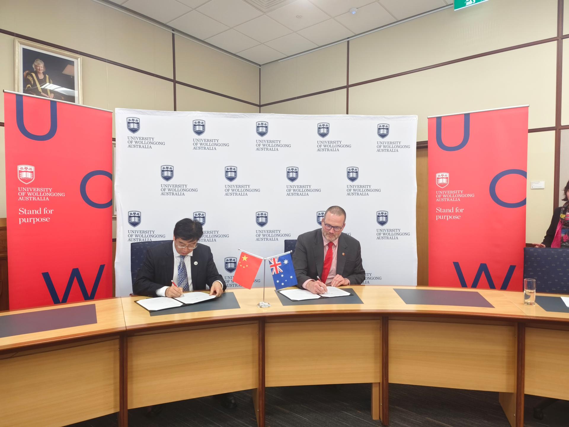 当天,彭双阶一行还访问了澳大利亚伍伦贡大学,与伍伦贡大学代理校长戴维·卡罗(David Currow)教授、副校长托尼·特拉瓦廖内(Tony Travaglione)教授、工程与信息科学学部常务院长格赛尔·阿里西(Gursel Alici)教授、副院长习江涛教授和菲利普·奥古邦纳(Philip Ogunbona)教授等举行会谈。两校续签了学生交换项目合作协议。双方一致认为,两校互为彼此重要的战略合作伙伴,共建的联合研究院发展良好,取得了丰硕的合作成果,是高等教育国际合作的典范,期待以此访为契机深化合作。双方就伍伦贡联合研究院未来发展、联合举办人工智能教育国际暑期学校、拔尖创新人才联合培养等事项进行深入探讨并达成共识。