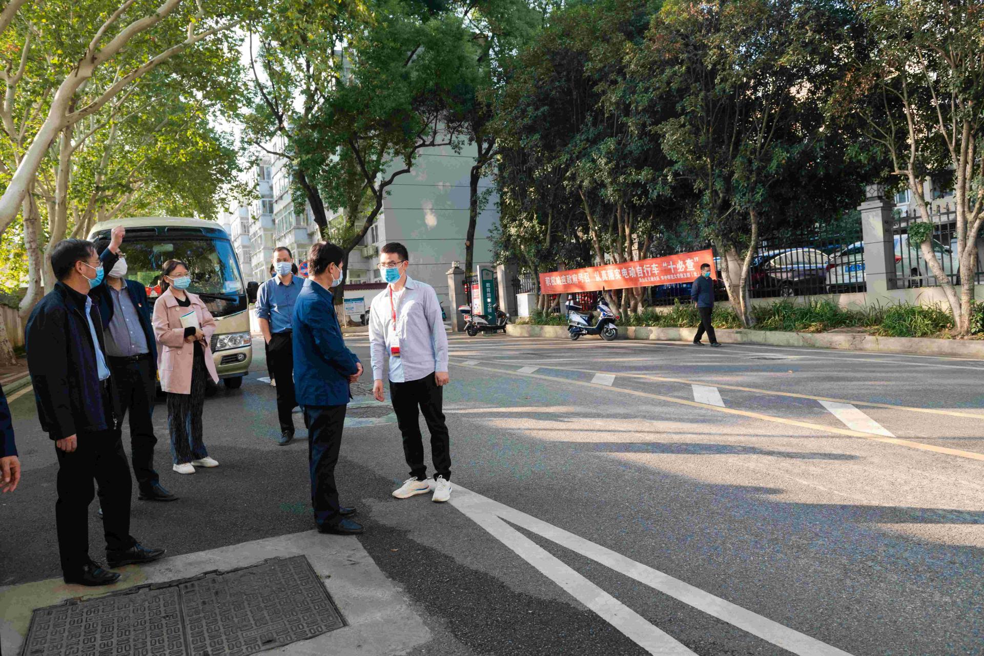在学校东门入口处,赵凌云与下沉的党员教工进行了交流,了解当前师生家属进出校园情况。他强调,不仅要加强教职员工进出校园管理,还要加强对校内居民、临时租户、桂子山庄住户和商业网点服务人员的管理,织密扎牢校园疫情防控网。
