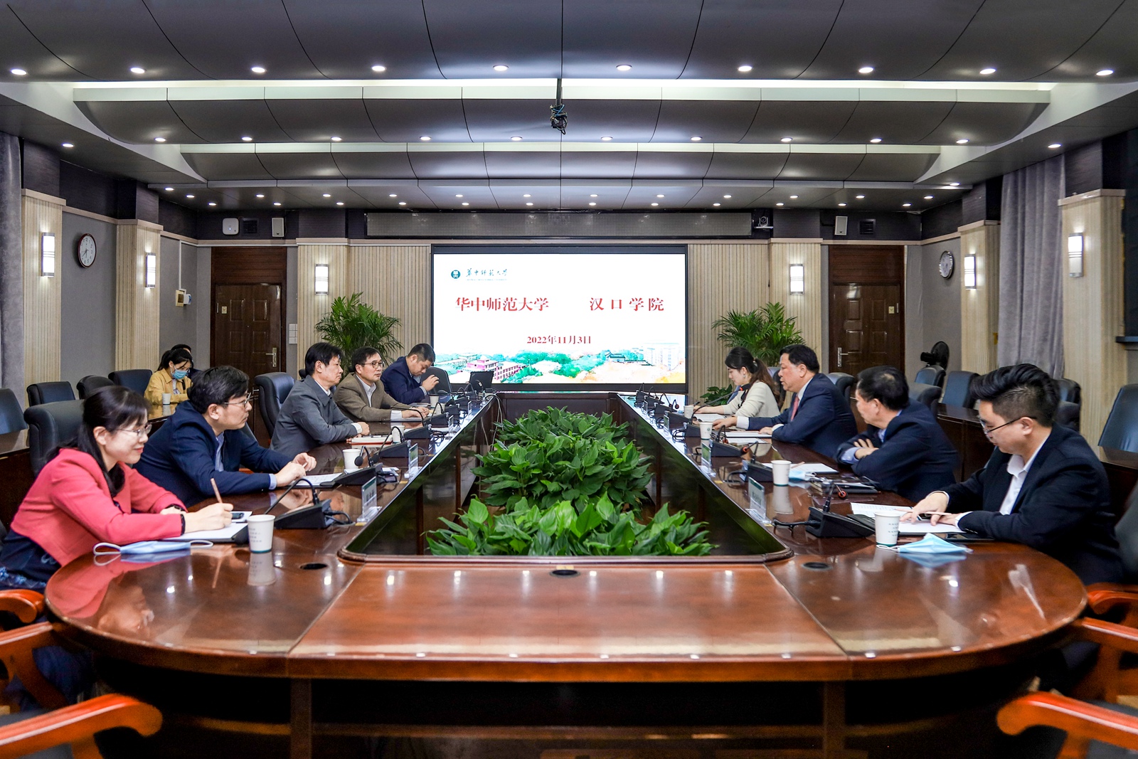 华大在线讯(记者 张严溢)11月3日,汉口学院董事长罗爱平、院长谢守成一行来访,在行政楼一楼会议室与校党委书记赵凌云、副校长任友洲,围绕“章开沅人文馆”建设的捐赠合作事宜进行座谈交流。汉口学院董事、相关部门代表及我校学校办公室、校友工作办公室主要负责同志参加座谈。