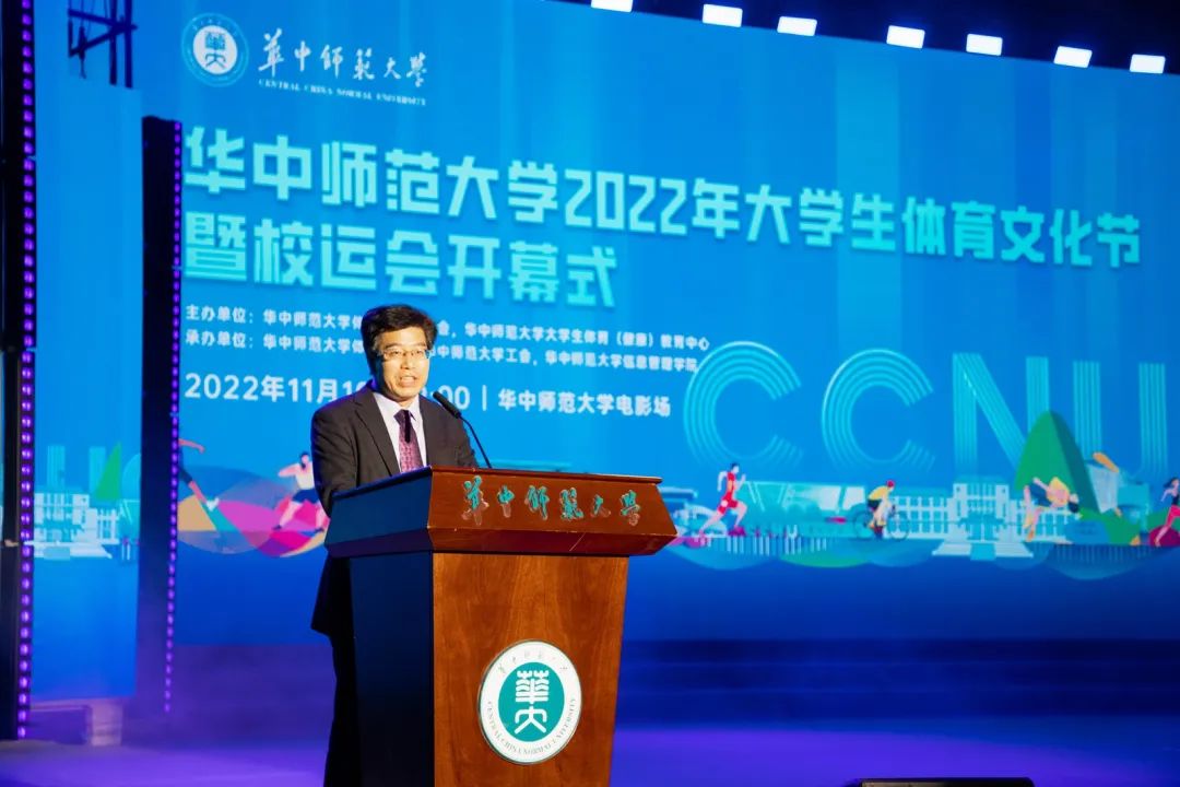 华大在线讯(记者 王丽婧 见习记者 董娱辰 王艳丽)11月10日,我校2022年大学生体育文化节暨运动会开幕式在露天电影场举行。校领导赵凌云、查道林、彭南生、陈厚丰、任友洲、彭双阶、李鸿飞、陈迪明,原副校长黄永林及相关职能部门、各培养单位负责人出席。开幕式由彭双阶主持。