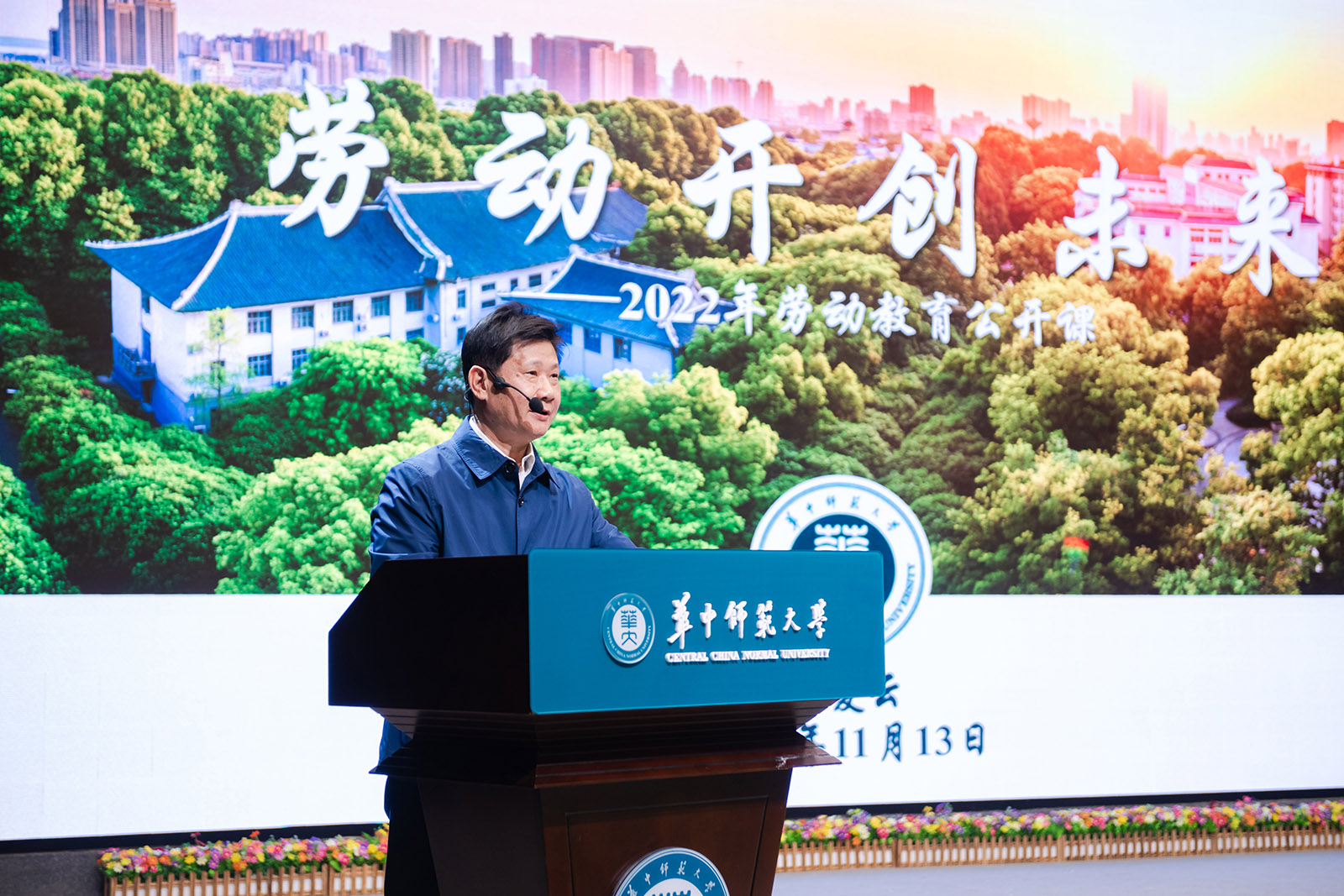 华大在线讯(记者 关国樑 见习记者 胡文迪)11月13日,我校劳育理论公开课《劳动开创未来》在九号楼六楼演播厅开课。校党委书记赵凌云作为主讲人,为2022级全体本科生授课。本次公开课由副校长彭双阶主持。