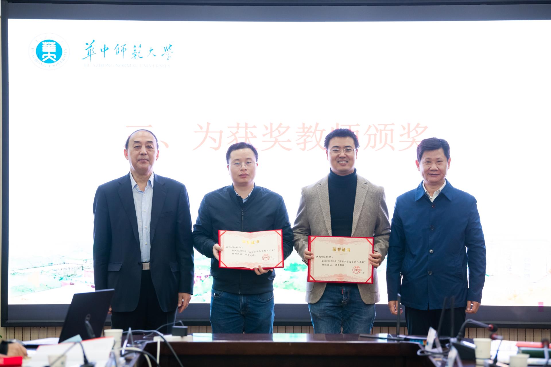 周洪宇和赵凌云为获奖教师颁奖