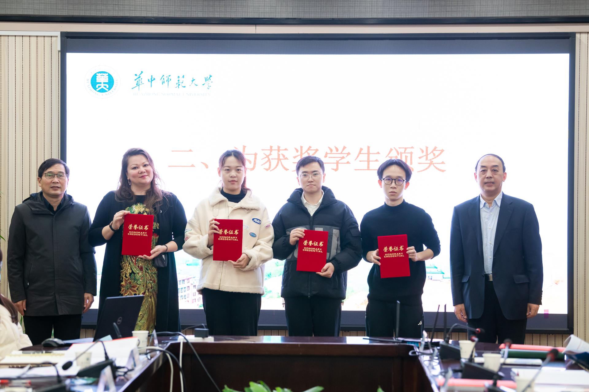 华大在线讯(通讯员 易吉林 罗少琦)11月29日,2022年度“周洪宇华大卓越人才奖”颁奖仪式在行政楼一楼会议室举行。十三届全国人大常委会委员、全国人大代表、湖北省人大常委会副主任、教育学院教授周洪宇,校党委书记赵凌云,副校长任友洲出席颁奖仪式,谌仁俊、罗金红、吴河江、沙蒙、李晨祺、KARACHEVA NADEZHDA等获奖师生以及相关职能部门负责人参加。