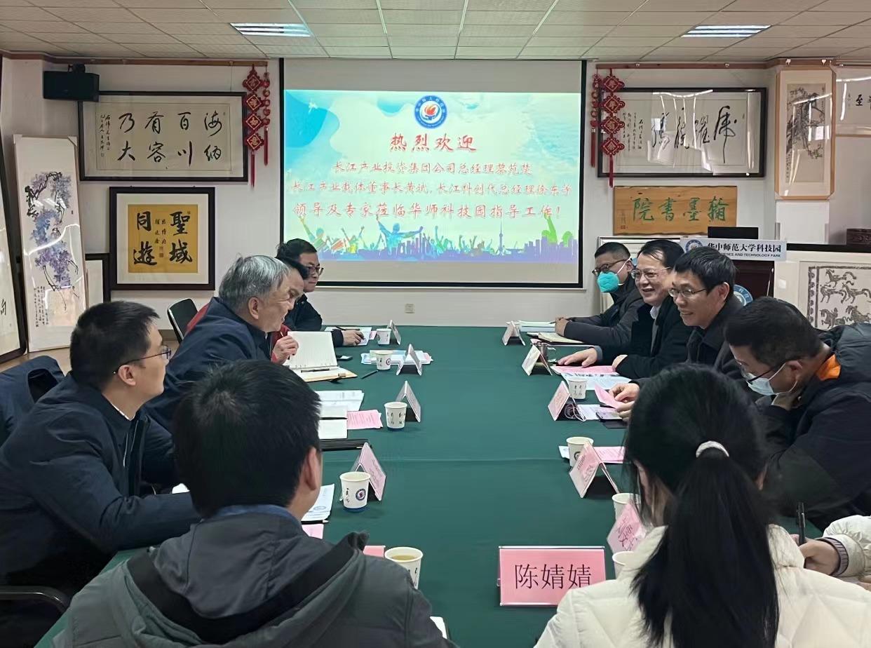 华师科技园负责人介绍了华师科技园发展概况,汇报了华师科技园在服务学校学科建设和人才培养,促进学校科技成果在园区落地、转化及产业化,服务学校师生创新创业等方面做出的有益工作探索。他表示,非常期待长江产业投资集团赋能华师科技园科技企业孵化与创新创业高质量发展。