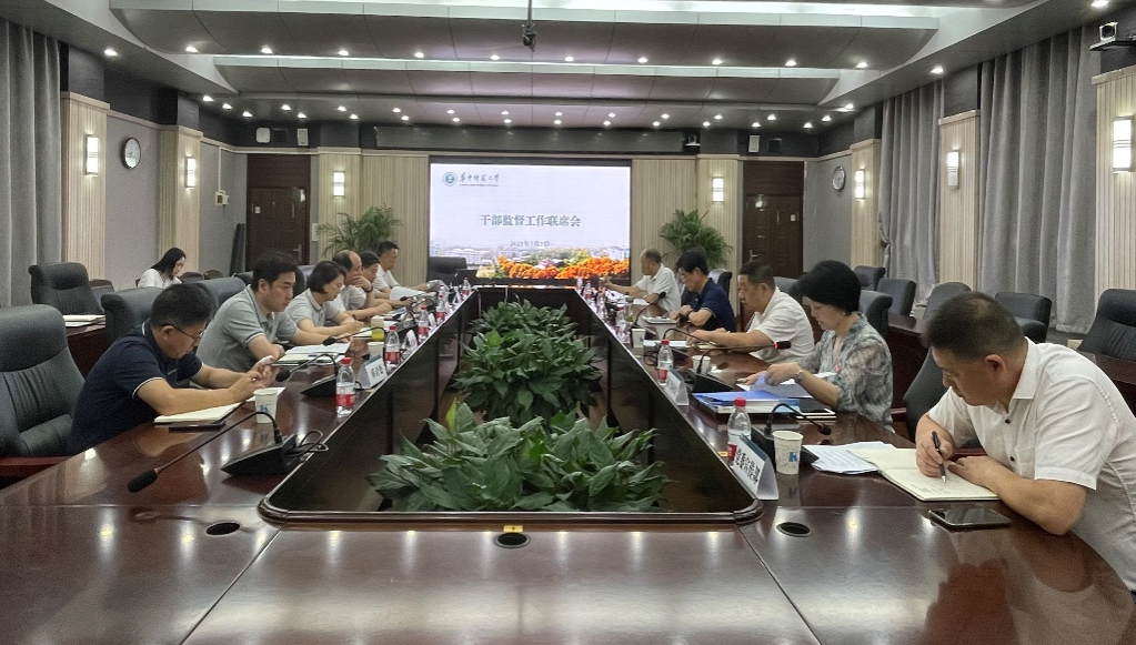 华大在线讯(通讯员 赵娜)7月7日,学校干部监督工作联席会在行政楼一楼会议室举行,学校办公室、纪委办公室(监察处)、巡察工作办公室、党委组织部、党委宣传部、党委统战部、机关党委、人事部(党委教师工作部)、财务处、审计处、保卫处等11个干部监督工作联席会成员单位负责人参会。会议由校党委副书记、纪委书记陈厚丰主持。