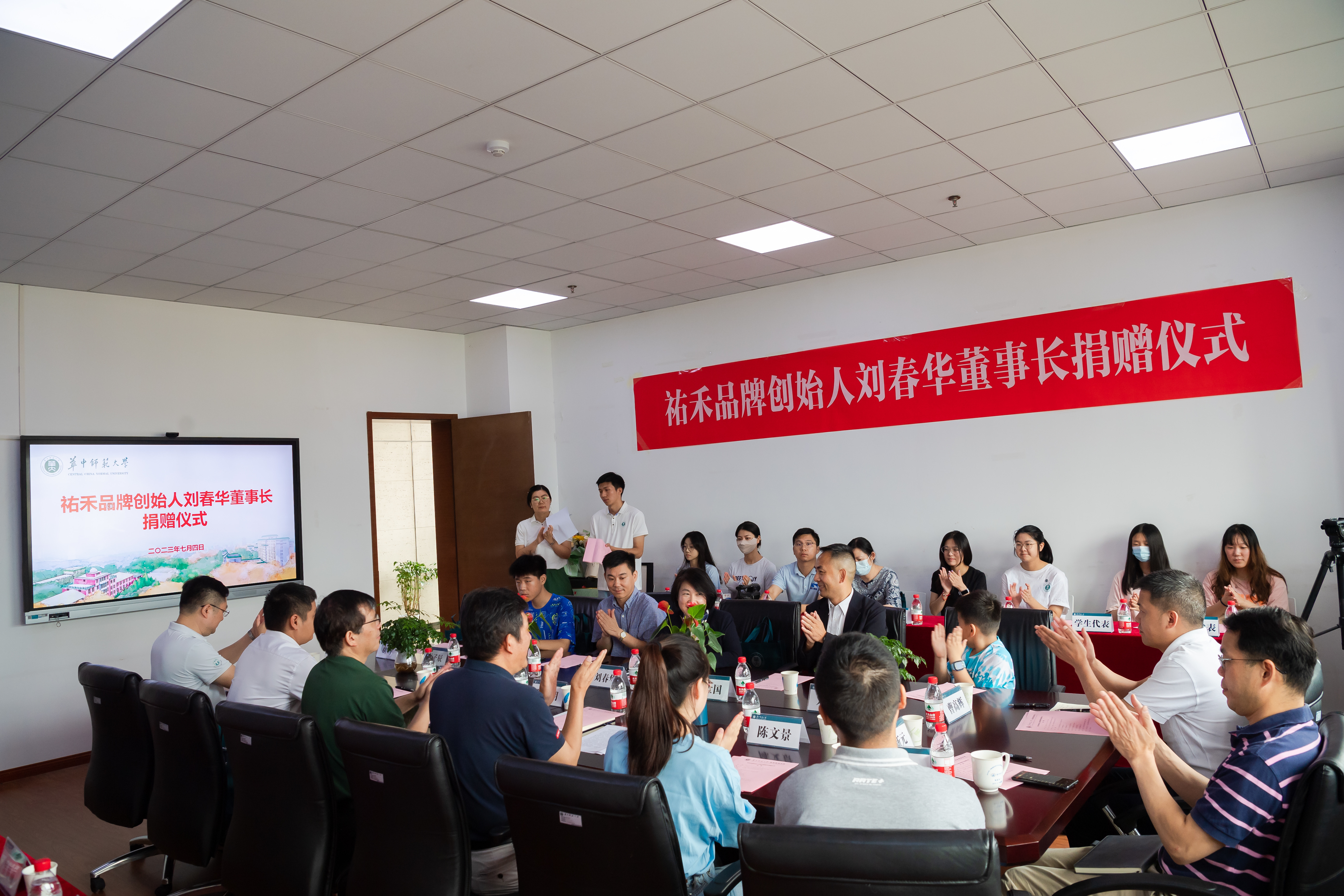 华大在线讯(通讯员 张学偲 蒋可鸣)7月4日,祐禾品牌创始人刘春华向我校信息管理学院捐赠100万元,用于支持该院教育事业发展。捐赠仪式在南湖综合楼10003会议室举行。信息管理学院2005级校友吕世国,祐禾公司高管王刚毅,校党委副书记、基金会副理事长陈迪明出席。