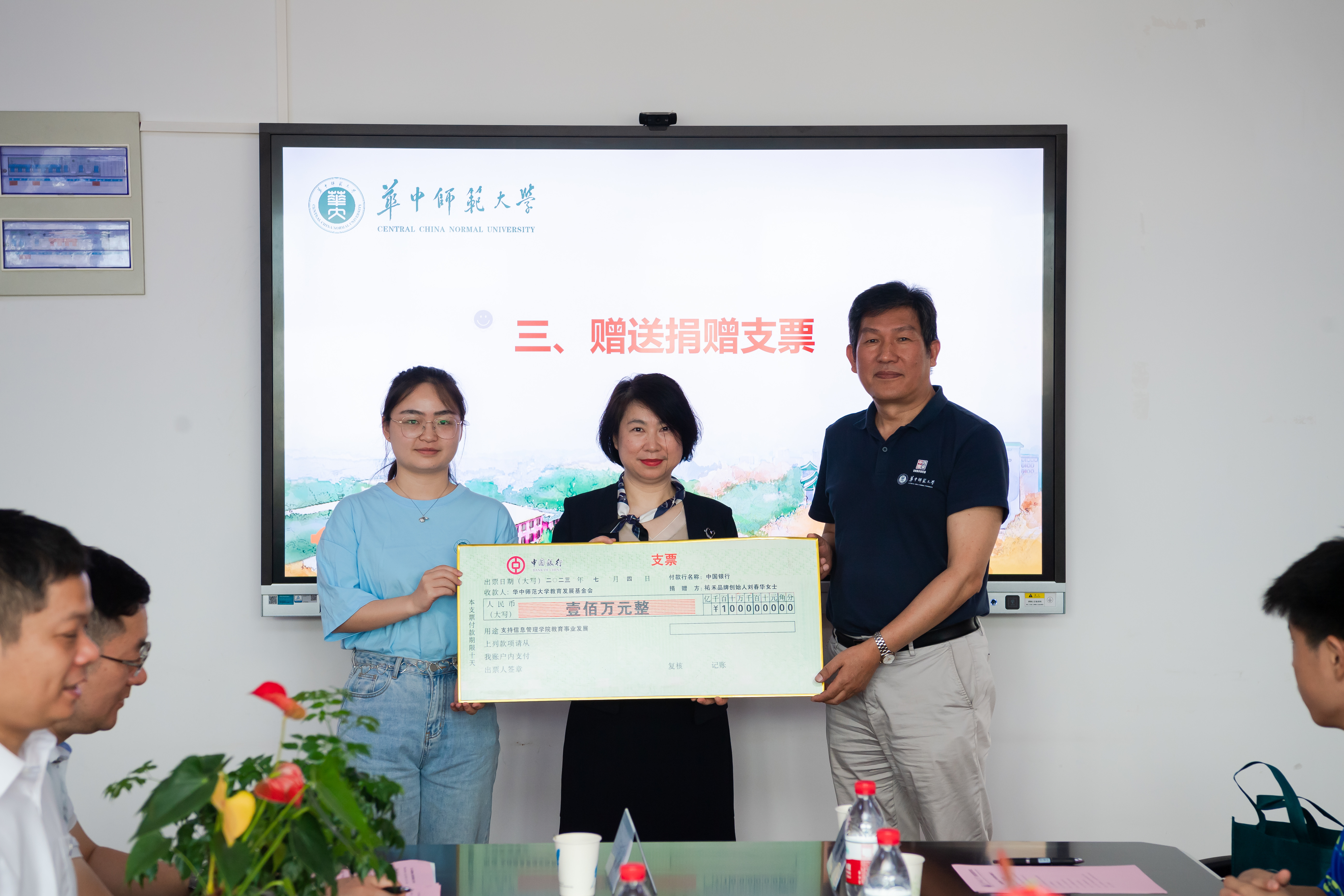 信息管理学院主要负责人代表学院对刘春华董事长的善举表示感谢,并表示,学院将秉承华师精神,努力为社会培养输送优秀人才。