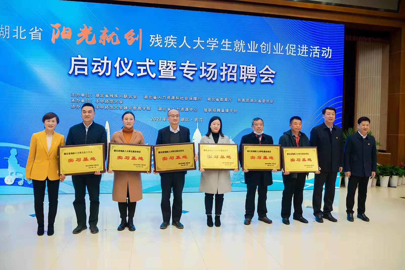 夏亚灵、赵凌云、省委办公厅二级巡视员廖学锋为首批“湖北省残疾人大学生就业创业实习基地”授牌