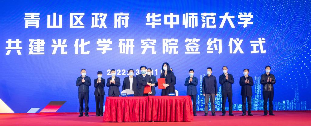 华大在线讯(通讯员 段治国)3月31日,我校与青山区人民政府共建武汉光化学技术研究院签约仪式在武钢体育馆举行。签约仪式为2022年武汉科技成果转化首场对接活动·数字经济专场的5个主题活动之一。在中国工程院院士丁烈云、中国工程院院士李建成、武汉市副市长陈红辉、我校党委书记赵凌云、青山区区委书记苏霓斌、武汉市政府副秘书长李涛、青山区区委副书记、区长刘栿堂等院士和领导的共同见证下,校党委常委、副校长彭双阶与青山区委常委、副区长王清梅分别签署、交换了合作共建协议。此协议的签署,标志着武汉光化学技术研究院的建设工作正式启动。