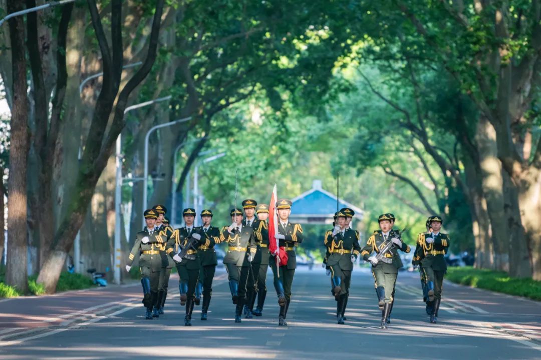 早上7点整,国旗护卫队护卫着国旗走向升旗台,庄严的国歌奏响,五星红旗冉冉升起,全体师生着装整齐,面向国旗肃立致敬。升旗仪式后,新团员代表双手接过团员证,由校领导为他们颁授团徽、团员证。在学生代表的领誓下,全体新团员作入团宣誓,面向团旗郑重许下“请党放心,强国有我”的铮铮誓言。
