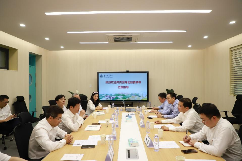 华大在线讯(通讯员 胡余映 崔嘉欣)5月27日,共青团湖北省委书记周森锋一行来校调研指导共青团及附属小学少先队工作,并与校党委书记赵凌云、校长郝芳华、副校长彭双阶及相关部门负责同志座谈。