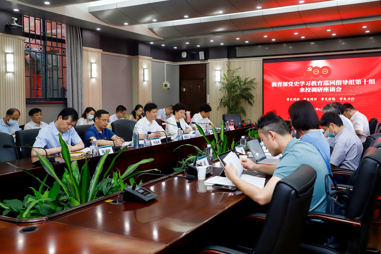 华大在线讯(记者 郝日虹)6月24日,教育部党史学习教育高校第十巡回指导组一行来校调研,指导我校党史学习教育工作。组长欧可平、副组长罗中枢、白华以及巡回指导组全体成员出席调研座谈会。学校党史学习教育领导小组全体成员、学校党史学习教育领导小组办公室成员单位负责人出席。校长郝芳华主持会议。