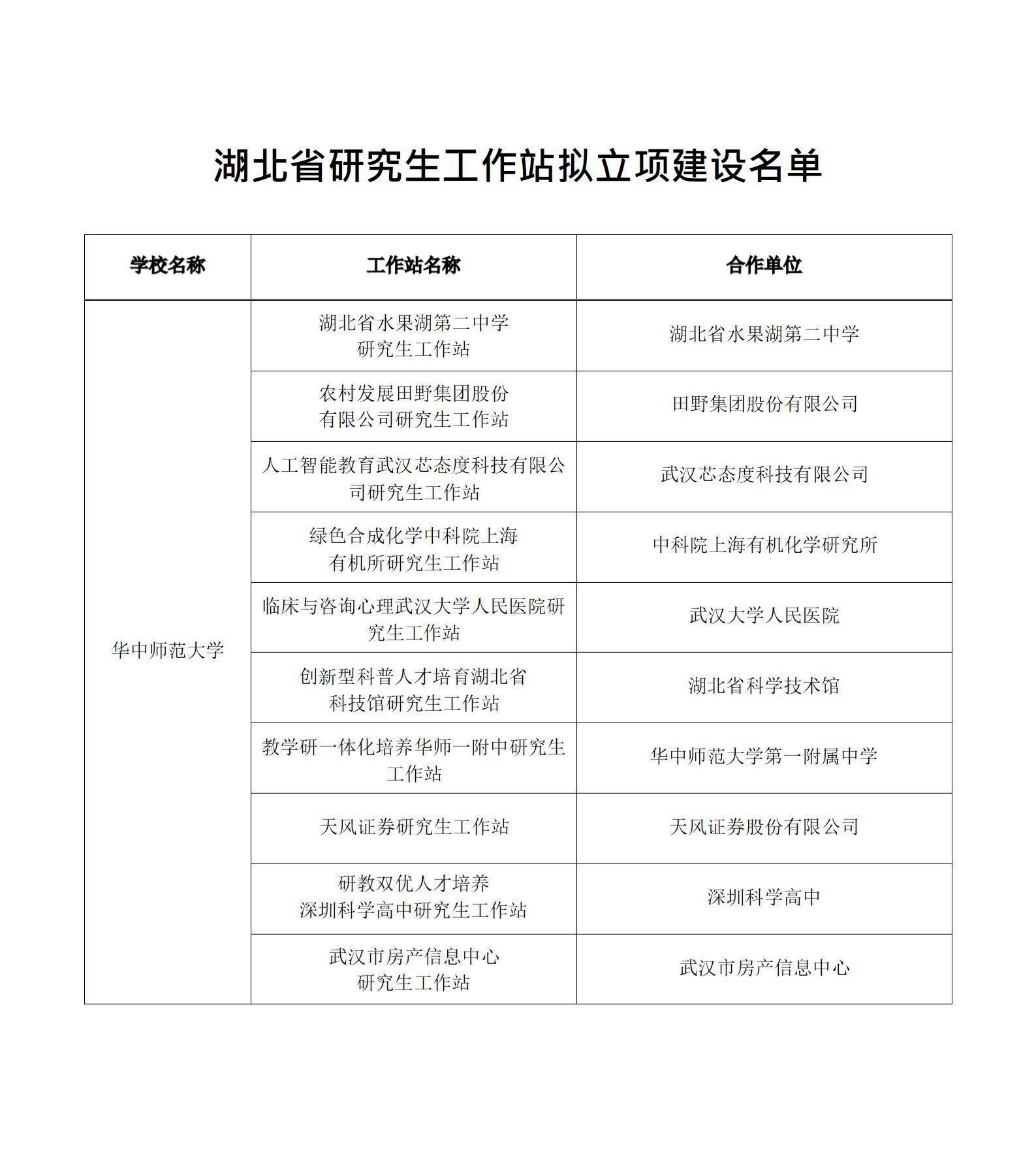 华大在线讯(通讯员 蔡亮)近日,湖北省教育厅公布2021年“湖北省研究生工作站”立项建设名单,我校推荐的10个工作站全部获批。