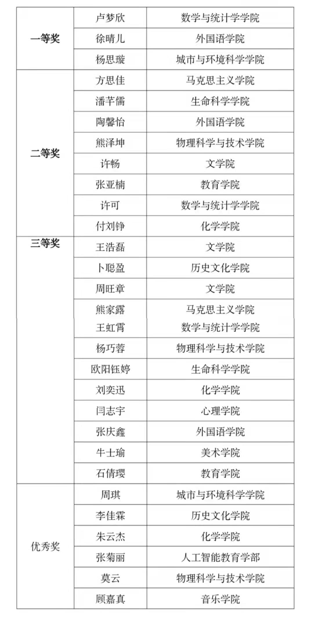 华大在线讯(记者 洪弋乔)“城市与环境科学学院杨思璇、数学与统计学学院卢梦欣、外国语学院徐晴儿获得一等奖……”9月24日,我校“第十四届师范生专业技能大赛·课堂教学技能大赛”决赛在教师教育学院举行,3名公费师范生从29位参赛选手中脱颖而出。