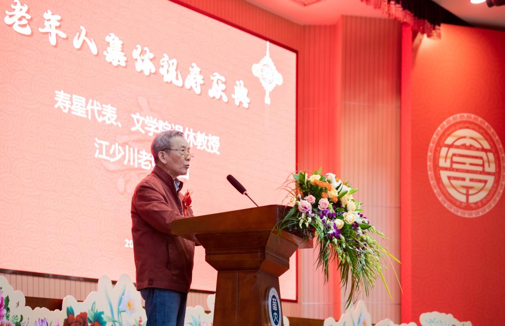 寿星代表、文学院退休教授江少川认为,此次重阳节对老寿星来讲具有特别的意义:恰逢中国共产党建党100周年,见证了大国崛起的历史变迁;从昙华林到桂子山,见证了华中师大的发展历程。他表示将会保持健康心态和进取精神,为学校发展贡献更多力量。