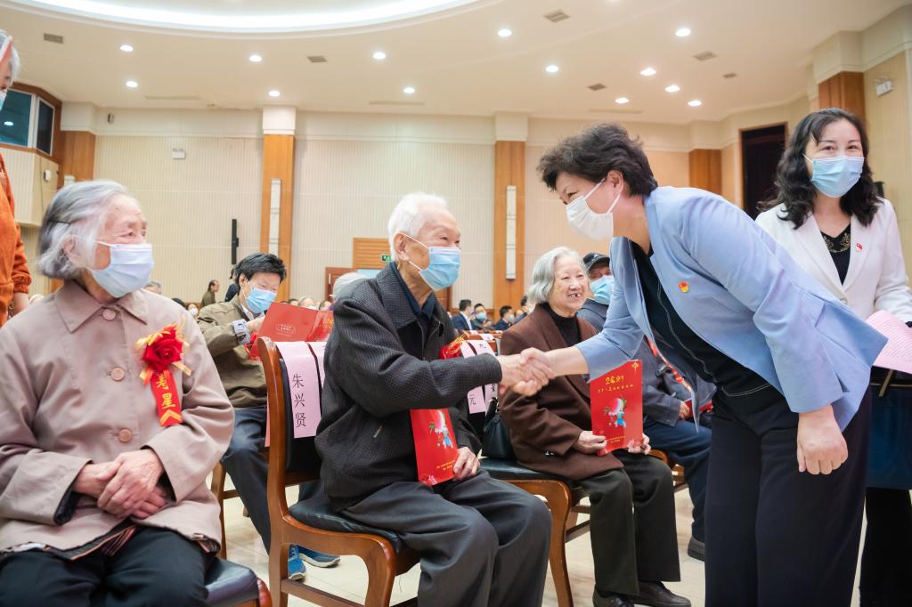 庆典上,校领导为九十岁老寿星代表敬献鲜花,青年学生为现场全体寿星敬献鲜花。为进一步弘扬中华民族孝老爱亲传统美德,营造养老敬老社会氛围,学校正在全校范围内开展“敬老月”活动,深入开展党史学习教育,挖掘“老有所为”先进事迹,推进“智慧助老”行动,不断增强广大老年人的获得感、幸福感、安全感。