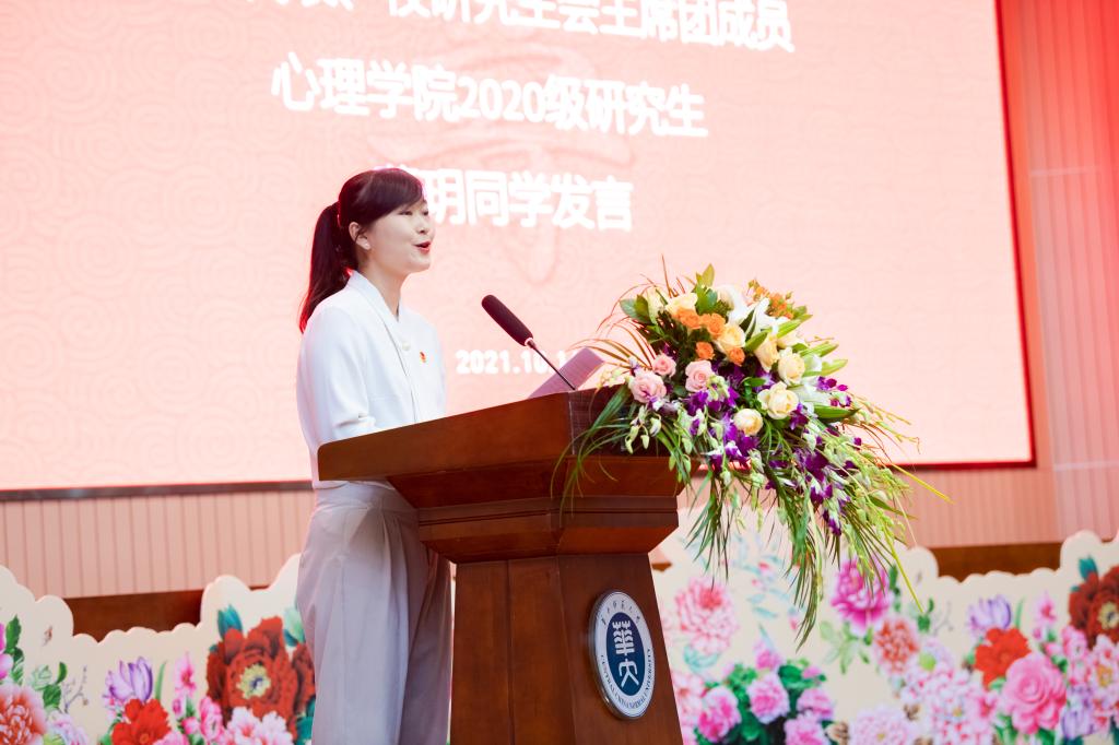 学生代表、校研究生会主席团成员、心理学院2020级研究生葛玥代表全体青年学子,向老寿星们为学校改革发展、学生成长成才所做出的努力致以崇高的敬意和由衷的感谢,并真挚祝福老寿星们健康长寿、阖家欢乐、幸福美满、喜乐平安。
