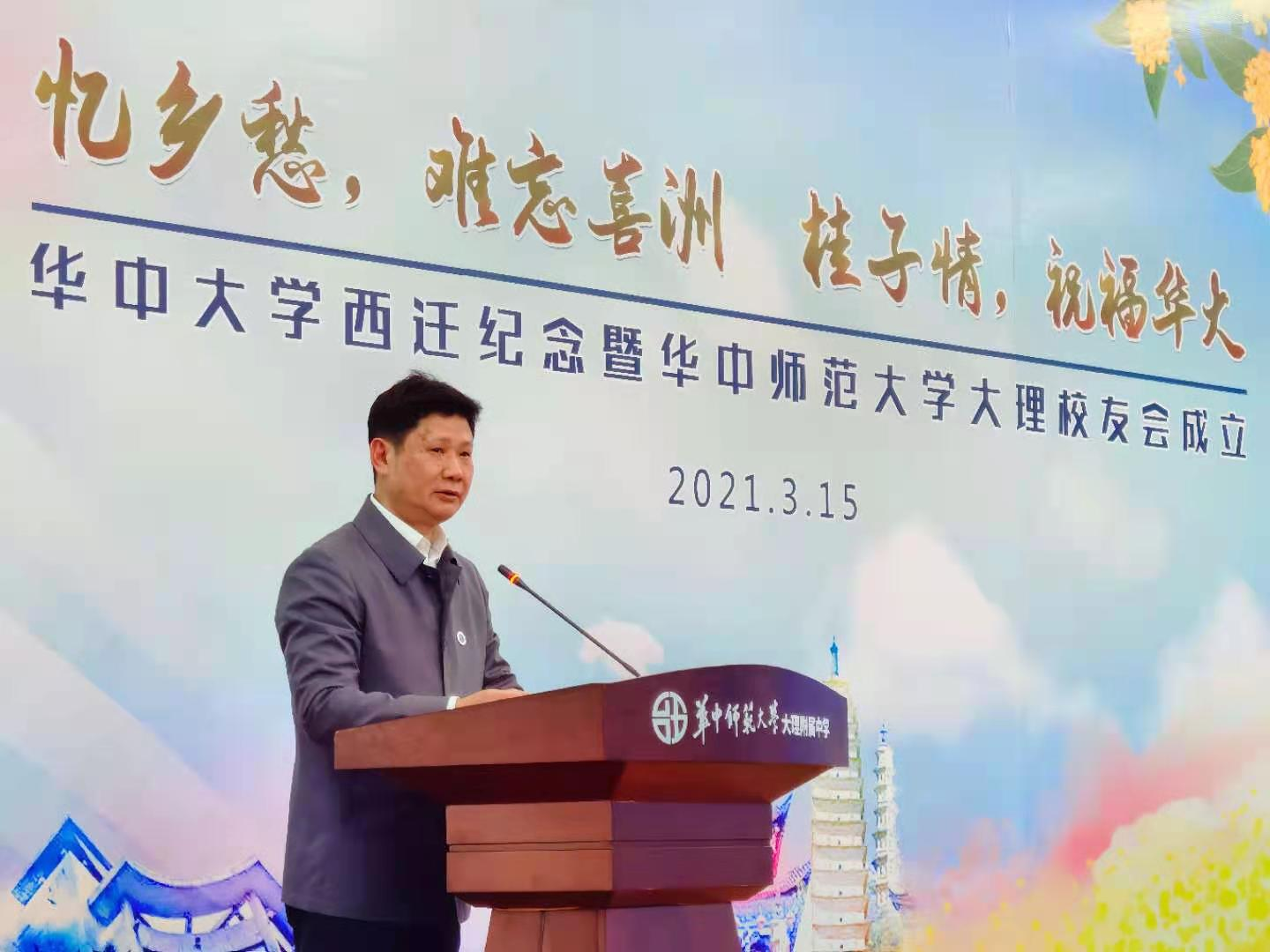 3月15日,大理校友会成立大会在喜洲华中师范大学大理附中举行。赵凌云回忆了华中大学西迁的办学史并对西迁精神进行了四点解读:一是教育救国、教育报国的爱国主义精神;二是筚路蓝缕、以启山林的艰苦奋斗精神;三是克难奋进、科技报国的开拓创新精神;四是潜心向学、扎根大地的实事求是精神。他表示,西迁喜洲是华师辉煌的一页,西迁精神是华师精神的重要源泉。这样的华师精神,值得一代代华师人永远铭记和传承下去。