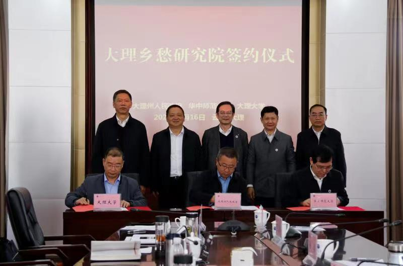 3月16日,大理州人民政府、大理大学与我校共建大理乡愁研究院签约仪式在大理大学举行。中共大理州委副书记、州人民政府州长杨国宗、校党委书记赵凌云、大理大学党委书记段林分别致辞。校党委副书记陈迪明代表我校与大理州、大理大学共同签订《大理白族自治州人民政府 华中师范大学 大理大学关于共建大理乡愁研究院合作协议书》。