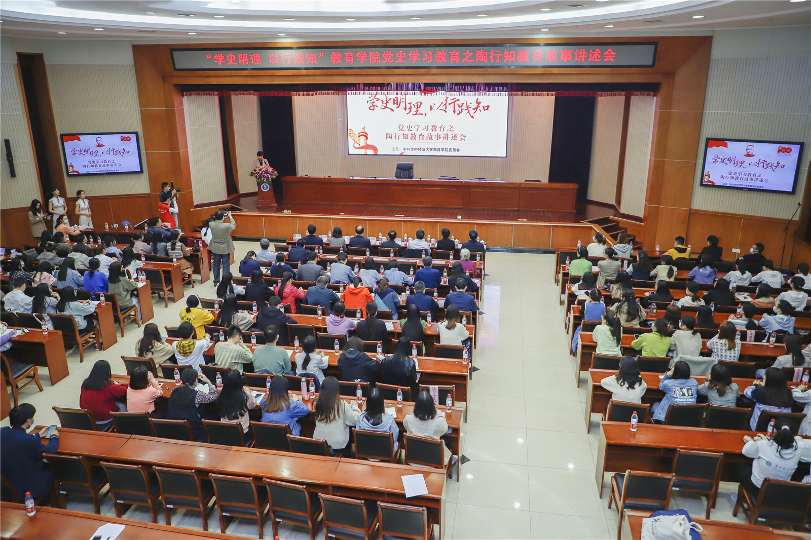 学校党史学习教育领导小组办公室成员及巡回指导组成员、教育学院党政班子全体成员、师生党员150余人参加讲述会。讲述会还通过线上方式直播,全国陶行知研究会会员、教育学院师生及校友千余人线上同步观看。