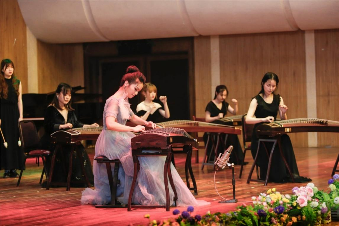 此次音乐会共分为“古韵”和“今声”两个篇章,以历史发展脉络为主线,将诗词与琴音相结合,并融入舞蹈、书法、朗诵、戏曲、说书等元素,充分展现中国民族音乐和优秀传统文化的独特魅力。同时,本场音乐会致力于在文学与音乐的浸润中打造“美育·思政”舞台,搭建高水平艺术实践平台,丰富思政教育中的美育载体,将音乐艺术展演与提升人才培养质量紧密结合,以可视化形式引导青年学子把握时代脉搏,在浓厚的校园文化氛围中带领学生发现美、感受美,培养其审美情趣和创造能力,厚植其家国情怀和使命担当。