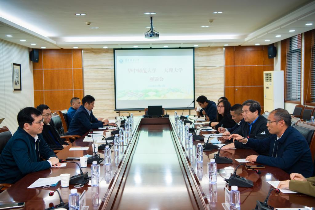 华大在线讯(通讯员 汤雅伦 杨可军)10月15日,大理大学校长王华、副校长褚远辉一行来我校考察交流,与校党委书记赵凌云、副书记查道林、副校长李鸿飞座谈。学校办、发展规划处、研究生院、教育学院、马克思主义学院、体育学院、城市与环境科学学院等相关单位负责人参加座谈。