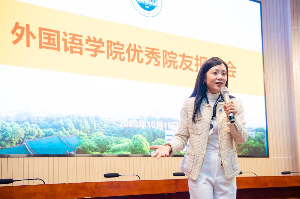 “过去一年,外国语学院校友会深圳分会成立;创办了院友会会刊《语思院友通讯》;学院校友工作的平台建设、文化建设、品牌建设正在稳步推进,学院层面的校友发展共同体已见雏形。”外国语学院党委副书记、学院校友会秘书长麻旎代表学院悉数院友会的蓬勃发展。