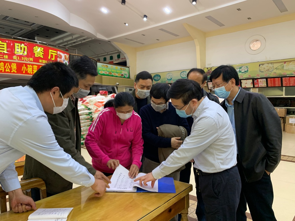 李鸿飞一行先后到学子餐厅和捐赠医疗物资仓库,查看了生活捐赠物资的使用记录和结余物资的存放情况以及医疗物资储存、管理和发放情况。