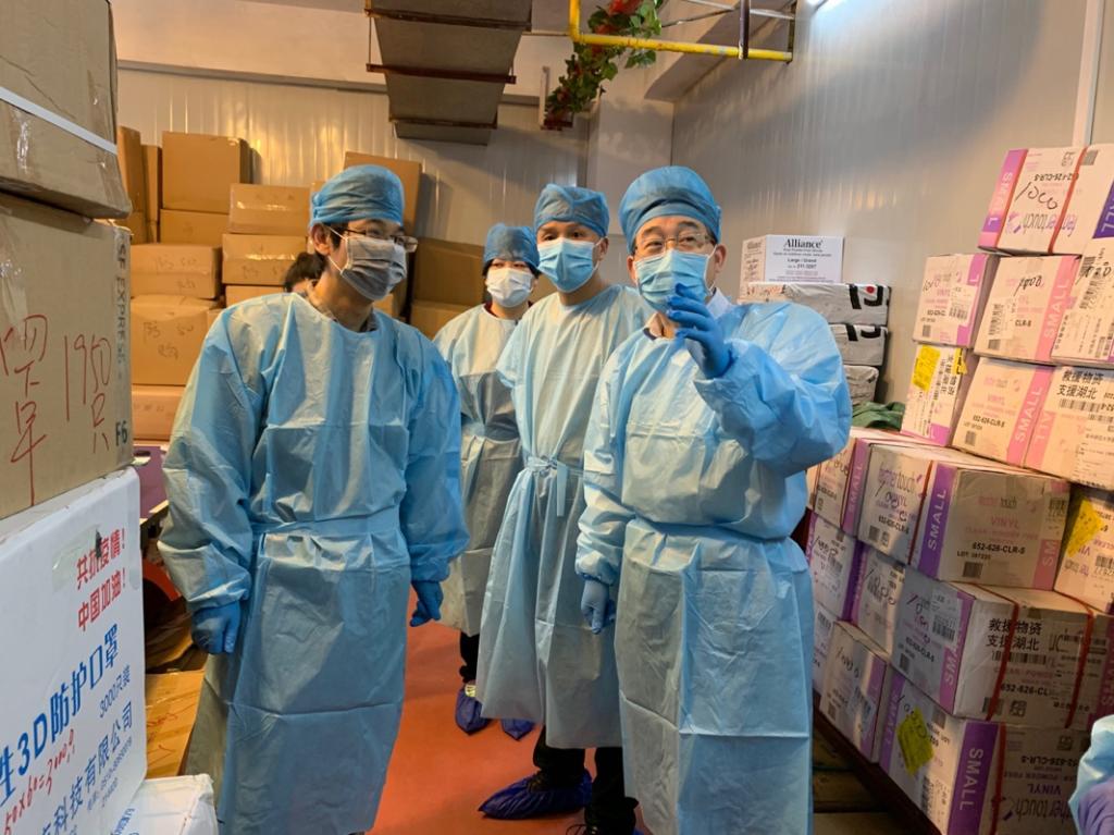 华大在线讯(通讯员 涂睿 罗少琦)为加强防控物资管理,规范防控物资的捐赠接受、组织分配、检查监督等具体工作的落实情况,副校长李鸿飞带领校友工作与合作发展办公室负责人深入学校疫情防控物资储存点,看望相关工作人员,实地督查捐赠物资的管理工作。后保部、校医院、国资办等单位负责人陪同。