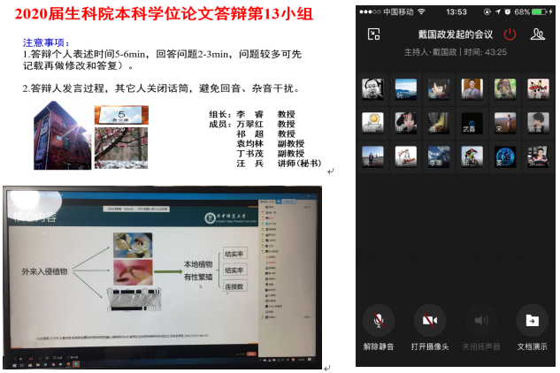 华大在线讯(通讯员 金新利)为落实教育部、湖北省教育厅有关精神,做到战“疫”防控不放松、学位授予不延迟,我校制定系列方案措施,精心设计各项环节,从“云课堂”到“云实验”再到“云答辩”,切实保障2020届本科毕业生顺利毕业。目前,各学院本科毕业论文线上答辩工作正有序开展。