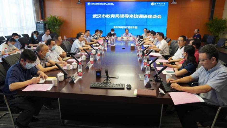 华大在线讯(通讯员 王俊)7月28日,武汉市教育局党委书记徐定斌、局长孟晖、副局长夏春胤以及基础教育处、教师工作处等相关处室人员一行14人,来校开展“武汉市教育大数据中心建设”专题调研。校党委书记赵凌云,教育大数据应用技术国家工程实验室、国家数字化学习工程技术研究中心主任杨宗凯教授,副校长、人工智能教育学部部长夏立新,以及学校办、人工智能教育学部等相关单位负责人参加调研座谈会。会议由夏立新主持。
