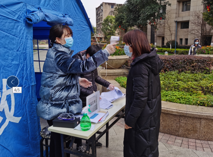 马克思主义学院党务干事、研究生辅导员丁琳2月21日起根据工作安排,先后在两个小区进行卡口执勤,为出入卡口的居民测量体温,进行安全排查。一枚小小的体温枪就像抗疫前线的一张盾牌,将可能携带的病毒抵挡在外,也像一枚枚定心丸,为体温正常的居民实时发放通行证。