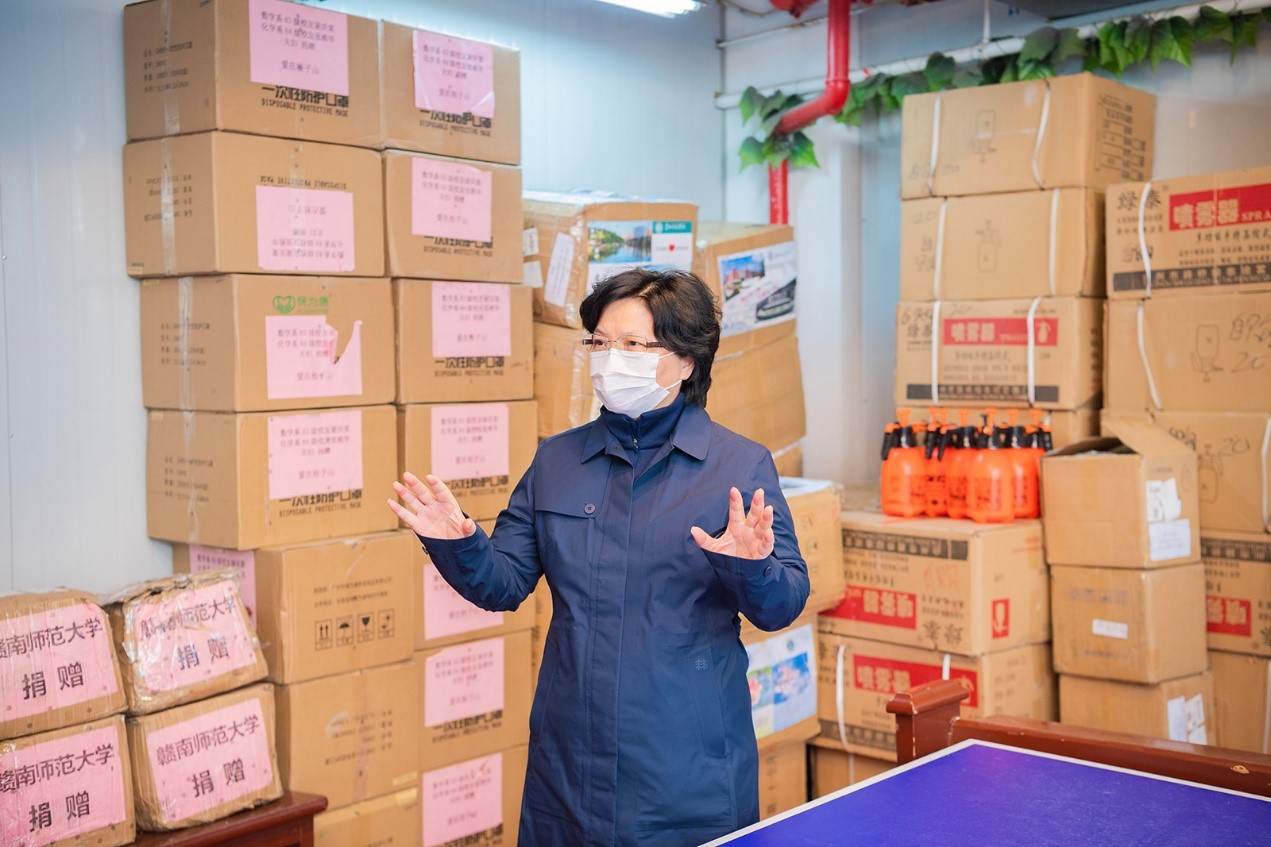 在学校防疫物质储备室,国资办和校友与国内合作办相关负责人向校领导我校近期防控物质的采购情况与社会捐赠情况。郝芳华强调,为了全面取得抗疫工作的最后胜利,学校会大力支持物质储备工作,国资办要提前谋划、按期储备足量的防控物资,其它部门做好配合;要将防控物资采购与一般物资采购严格分开,严守审计与核查要求。