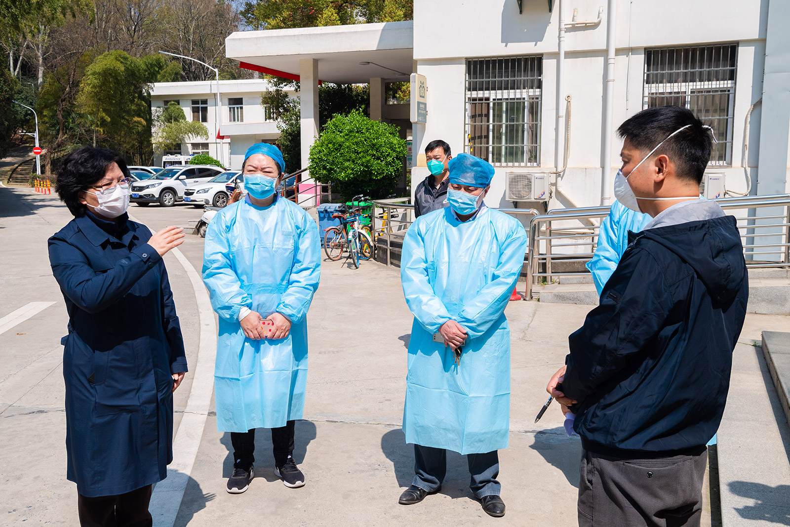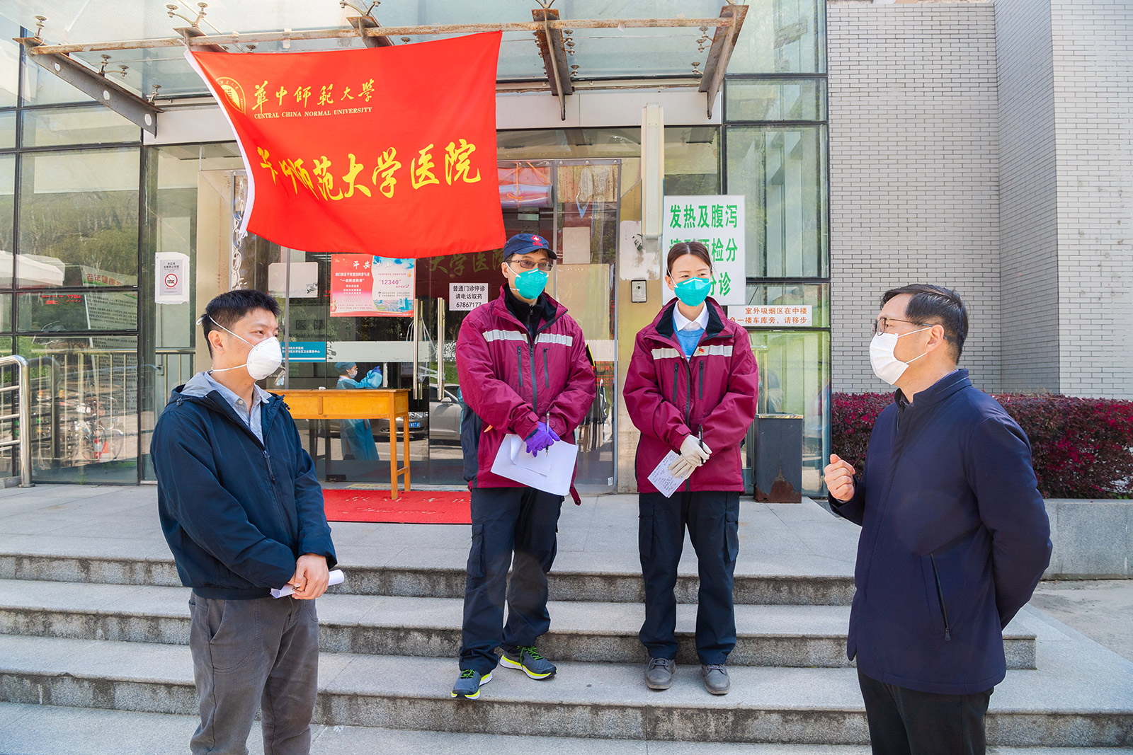 华大在线讯(记者 华轩)3月18日上午,中央指导组防控组社区防控专家叶财德、流行病学调查专家孟双、消杀专家江宁等一行3人来校,对我校基层医疗卫生能力建设及疫情防控情况、校园消杀、社区管理工作、复工复学准备等进行调研。校长郝芳华、副校长任友洲陪同。