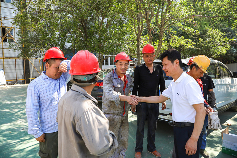 来到化学楼实验室,赵凌云看望了暑期依然在学校进行试验的科研工作者和学生。在南湖变电站,赵凌云慰问了依然带着安全帽在工地工作的工人们,参观了变电站的内部结构和新设备。西区树木暑期正在进行修剪工作,赵凌云警示要完全修剪掉有安全隐患的树枝,及时处理枯死的树木,保障校园师生的日常出行安全。