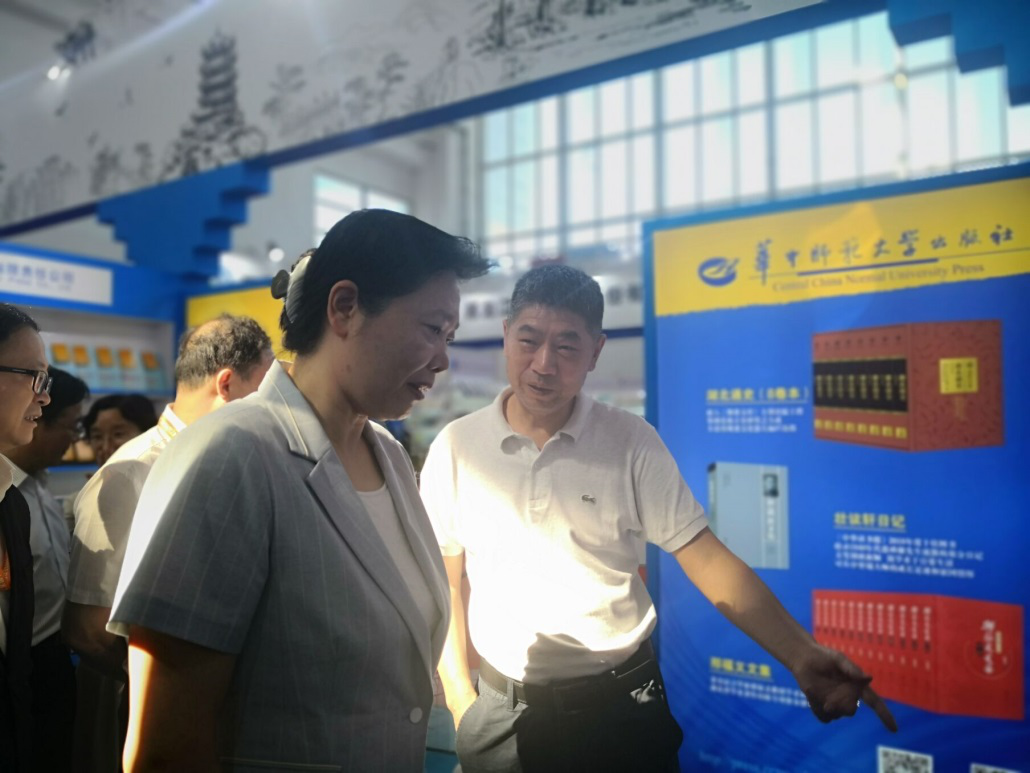 华大在线讯(通讯员 庞丹)8月21至25日,第26届北京国际图书博览会(BIBF)于在北京新国展中心举行,来自95个国家和地区的2600多家海内外展商参展,展示中外精品图书30多万种。湖北省委宣传部部长王艳玲莅临本次图博会湖北展区,现场指导参展工作。在校出版社展位前,出版社负责人向王艳玲部长详细介绍了此次参展情况。