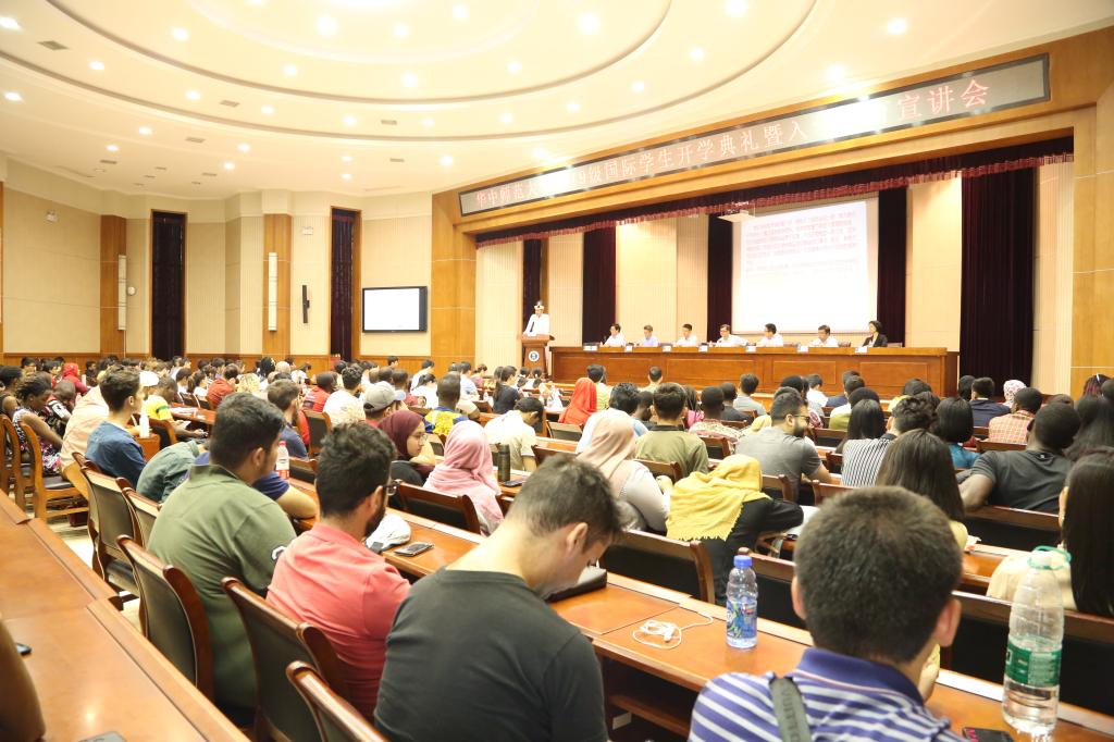 华大在线讯(通讯员 陈楠)9月10日上午,我校2019级国际学生开学典礼暨入学教育宣讲会在科学会堂一楼报告厅隆重举行。副校长彭南生教授、学校办公室、本科生院、研究生院、国际合作与交流处、国际文化交流学院(留学生管理工作办公室)以及学校各国际学生培养单位负责人以及2019级全体国际新生参加了开学典礼。