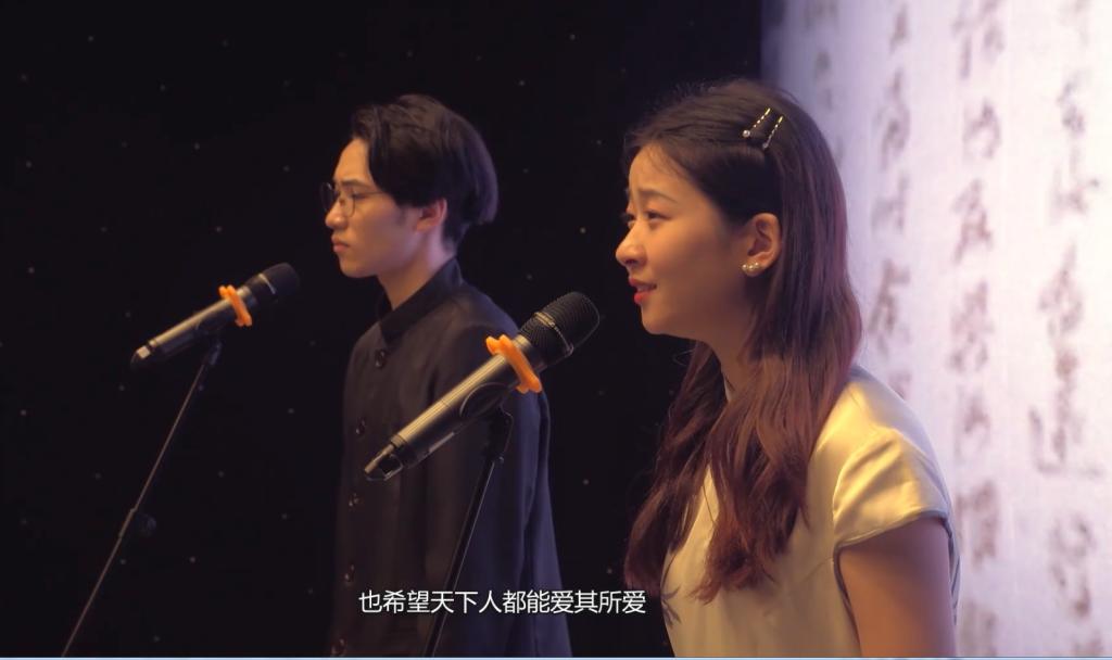 5月上旬,按照教育部和湖北省语委的工作安排,校语委办组织开展校内选拔活动,新闻传播学院5位学生入选。围绕“诵古今经典、写华夏文明、讲中国故事”的赛事主题,经过再三选题以及朗诵者的多次演绎,确定由唐屹、赵展志和卿爱玲朗诵古文经典《短歌行》,刘昶和赵婉玥朗诵现代文经典《与妻书》。新闻传播学院播音与主持艺术系白嗣新老师指导选手进行了一个月的严格训练。