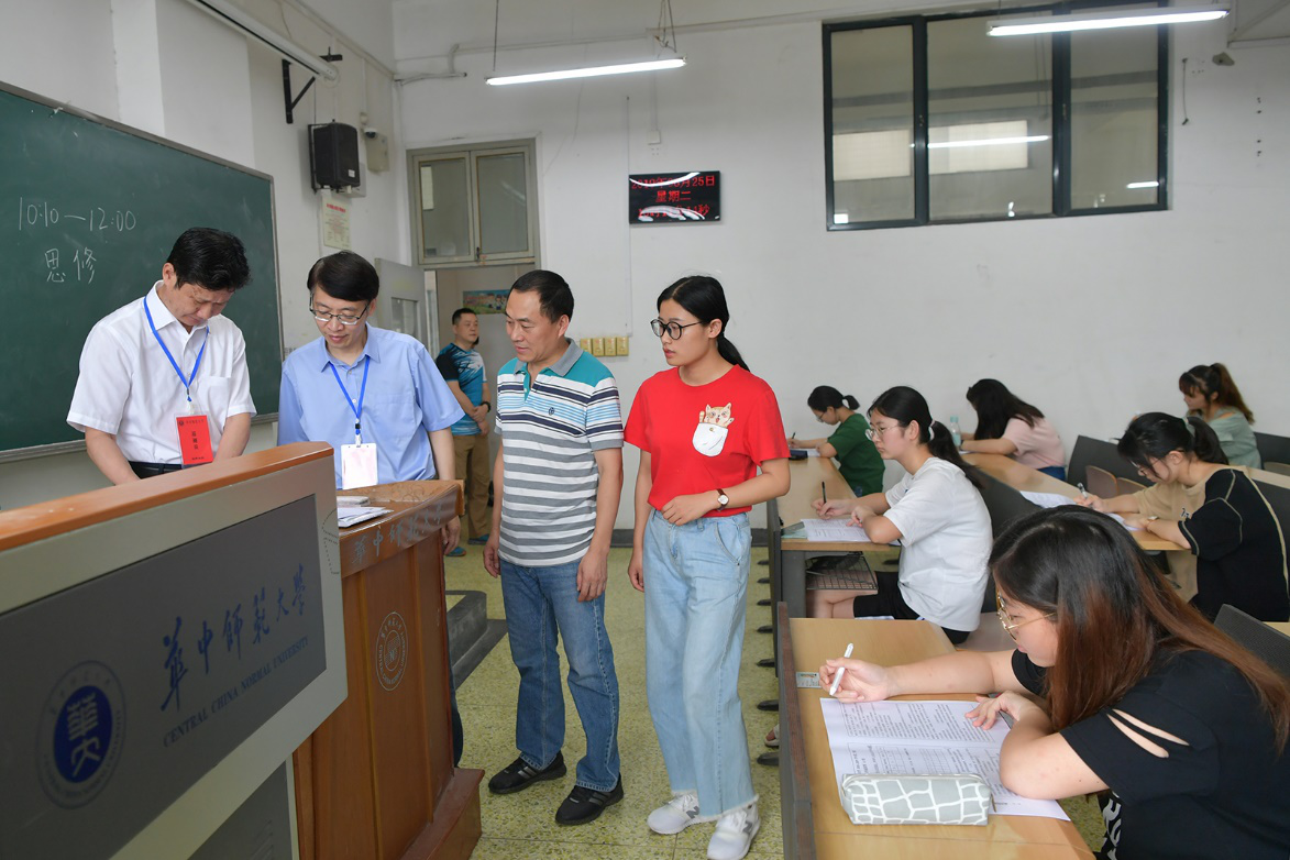华大在线讯(通讯员 王彤)6月25日,校长、党委副书记赵凌云在本科生院主要负责人的陪同下,来到8号教学楼,深入中国近现代史纲要和思想道德修养与法律基础两门课程考试考场进行巡视,了解考风考纪情况。