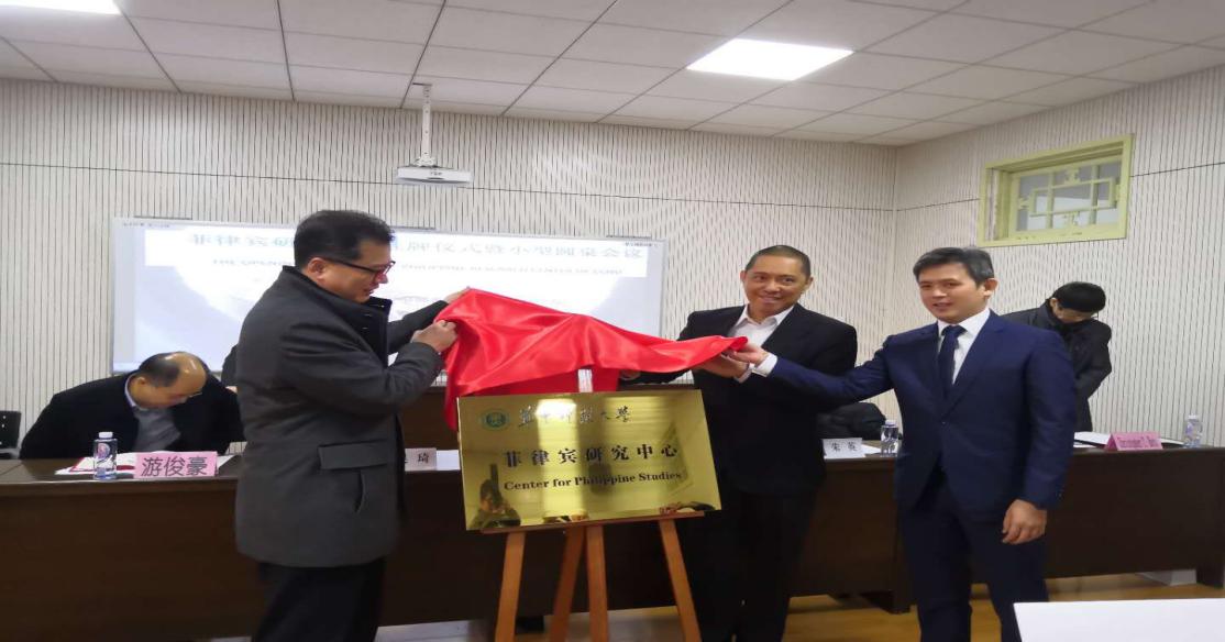 华大在线讯(通讯员 王蒙蒙 彭慧)1月15日,我校菲律宾研究中心挂牌仪式举行。副校长彭南生出席,社科处、国际交流与合作处(港澳台办)、历史文化学院、国际文化交流学院等相关单位负责人,以及菲律宾研究中心朱英教授、曾晓祥副教授、彭慧副教授,菲律宾雅典耀大学的Rene Salvador R. San Andres教授、菲律宾雅典耀大学中国研究项目部负责人Christopher T. Bata博士、新加坡南洋理工大学中文系主任兼华裔馆馆长的游俊豪教授、厦门大学南洋研究院副院长施雪琴教授等参加。