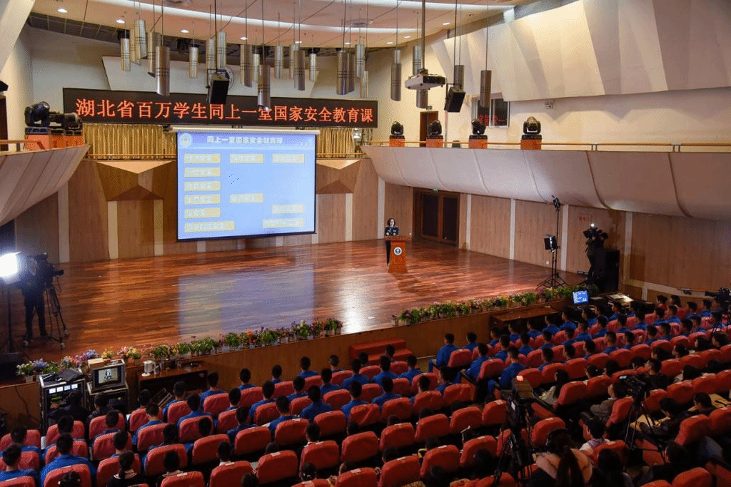 4月10日,由我校承办的湖北省“大中小学生同上一堂国家安全教育课”主题党日、主题团队日活动在我校音乐厅进行录制。活动由湖北省委教育工委、省教育厅牵头,省委国安办、团省委、省广电台与我校共同承办。活动现场,校党委副书记覃红与400余名来自我校及附属中小学的学生代表共同聆听由火箭军研究院研究员、博士研究生导师邵永灵讲授的国家安全课。