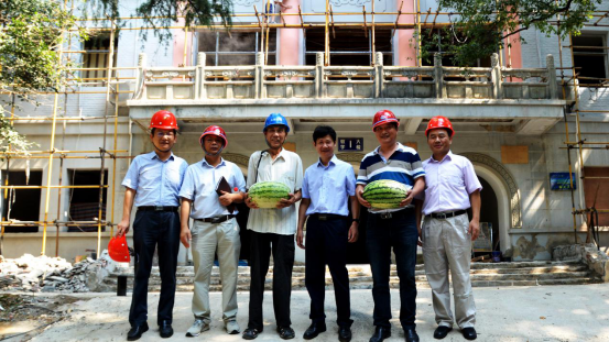 华大在线讯(通讯员 熊李强)今年武汉高温天气已持续二十余天,学校暑期工程建设一片繁忙。8月5日,赵凌云在学校办、基建处、后勤保障部负责人陪同下赴学校各在建工地慰问坚守在一线的工作人员,并送上防暑降温慰问品。