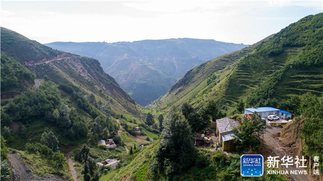 ↑这是8月29日在云南省曲靖市会泽县大海乡拍摄的仇文飞家(右下,无人机拍摄)。新华社记者 胡超 摄