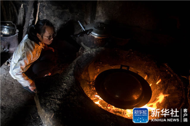 ↑在云南省曲靖市会泽县,仇文飞在家中的灶房做午饭(8月29日摄)。新华社记者 胡超 摄