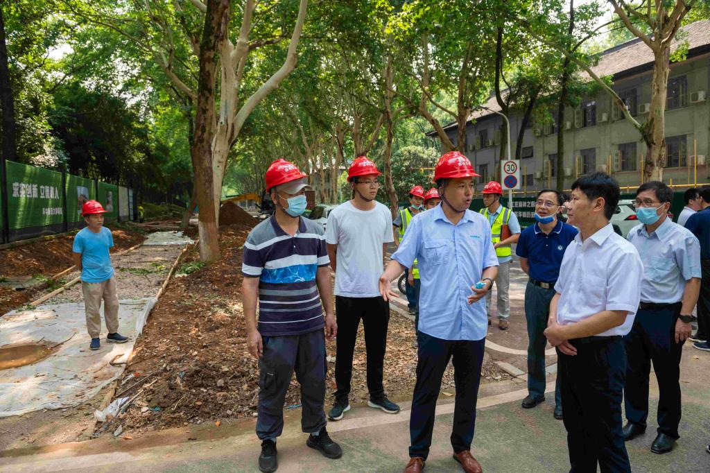 赵凌云一行先后来到大学生活动中心、元宝山学生公寓3栋、十号教学楼、文科楼综合楼二期、一号教学楼等施工现场,看望慰问暑期工作在一线的施工人员,听取相关负责人工作汇报,了解各项目改造情况和工程进展。赵凌云表示,暑期是校园基本建设和维修改造的黄金时期,在做好疫情防控工作的同时,各工地在高温天气下要强化安全意识,科学规划、统筹安排、扎实推进,确保工程质量和工程进度,为新学期各项工作顺利开展提供基础保障。