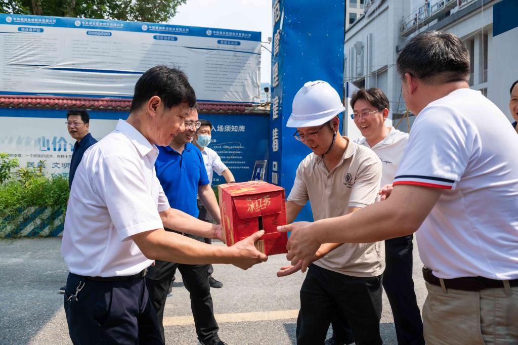华大在线讯(记者 郝日虹)炎炎夏日,骄阳似火。暑假期间,在抓好常态化疫情防控工作前提下,学校对部分教学楼、学生宿舍等建筑进行维修改造,旨在进一步改善学校办学条件,优化育人环境。近日,校领导带队看望慰问校内各工地工作人员,检查施工进展情况。